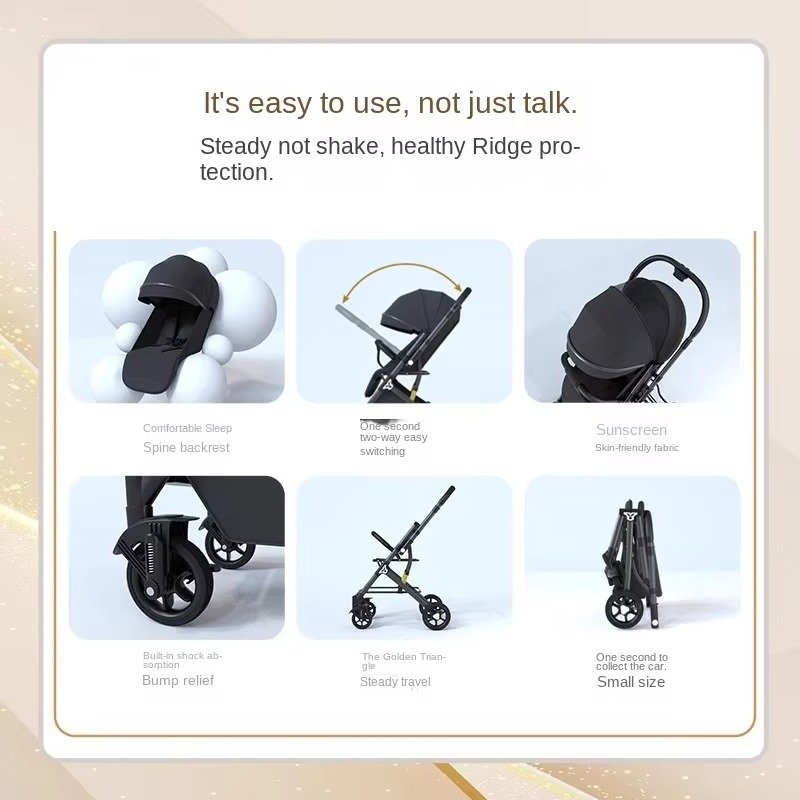 This Lightweight Two-Way Push Four-Wheel Baby Stroller is designed for comfort, safety, and convenience. Its two-way push handle allows you to position your baby facing you or facing forward, while the high landscape seat gives infants a better view of the world and improves airflow. The stroller includes spine protection support to help promote healthy posture for your newborn.