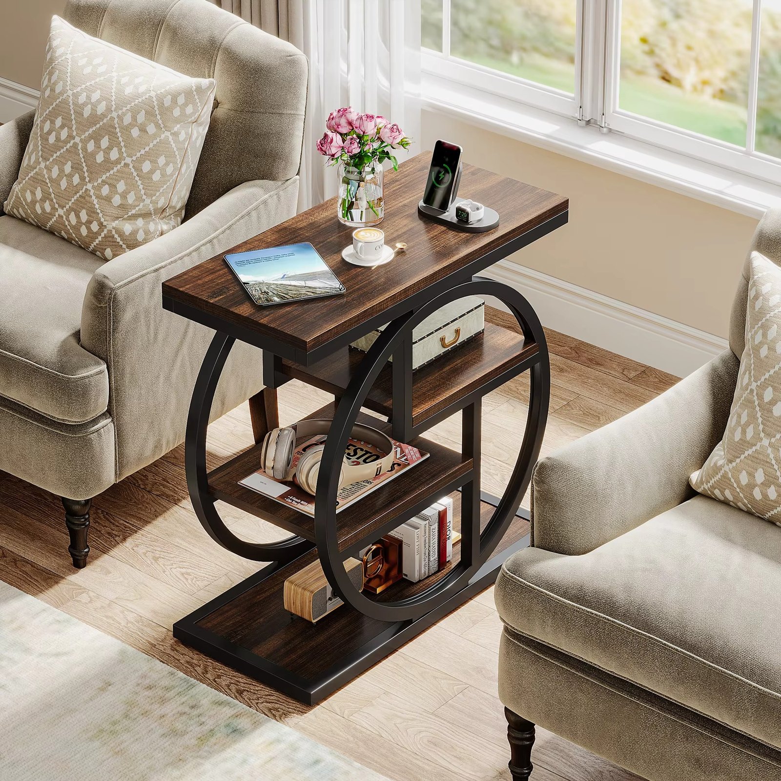The Tribesigns 4-Tier Narrow End Table is a versatile addition to any living room or bedroom. Its industrial design adds a modern touch, while the four spacious shelves provide ample storage for books, decor, or everyday essentials. Durable and stylish, this side table keeps your space organized without compromising on style.
